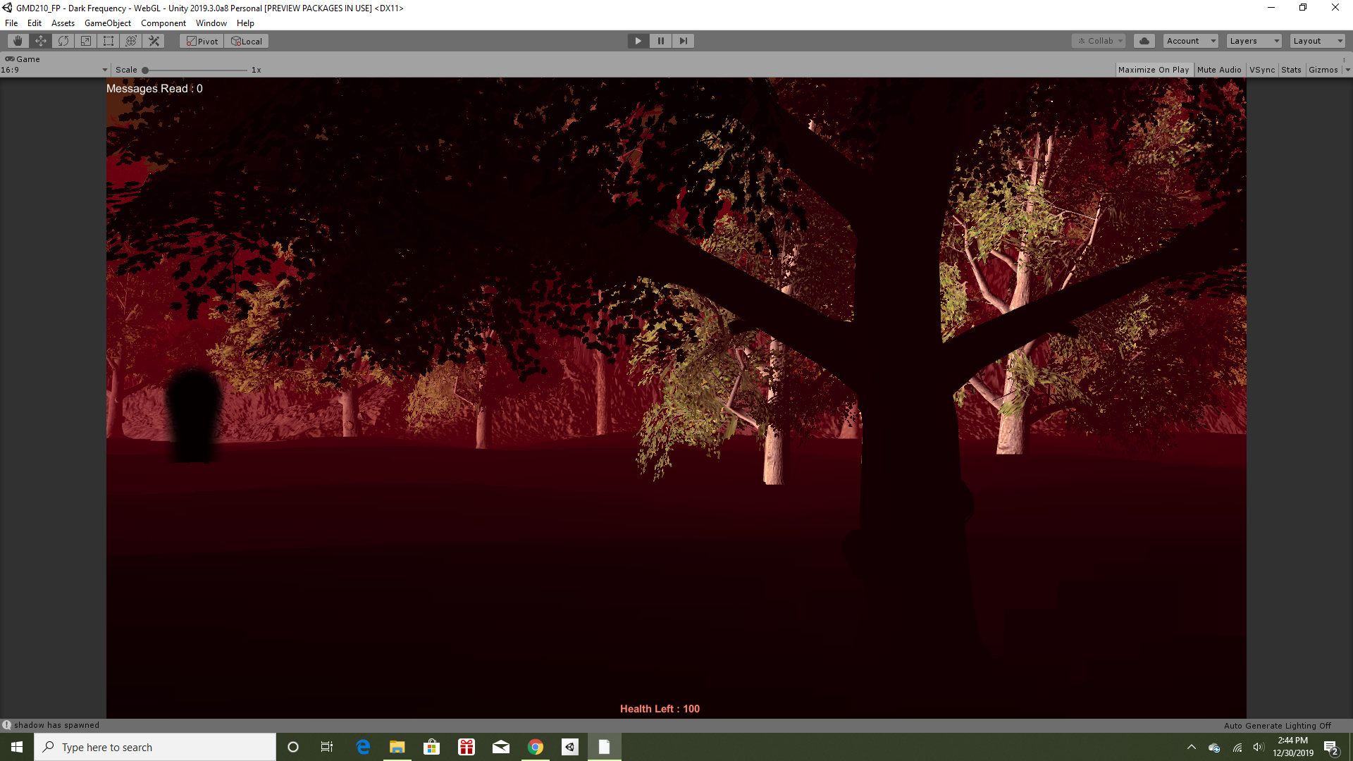 Find the notes scattered about while avoiding the shadow. Be careful, it's deadlier than it looks. Use WASD to move around and mouse movement for rotating the player's view. Make sure sound is on.